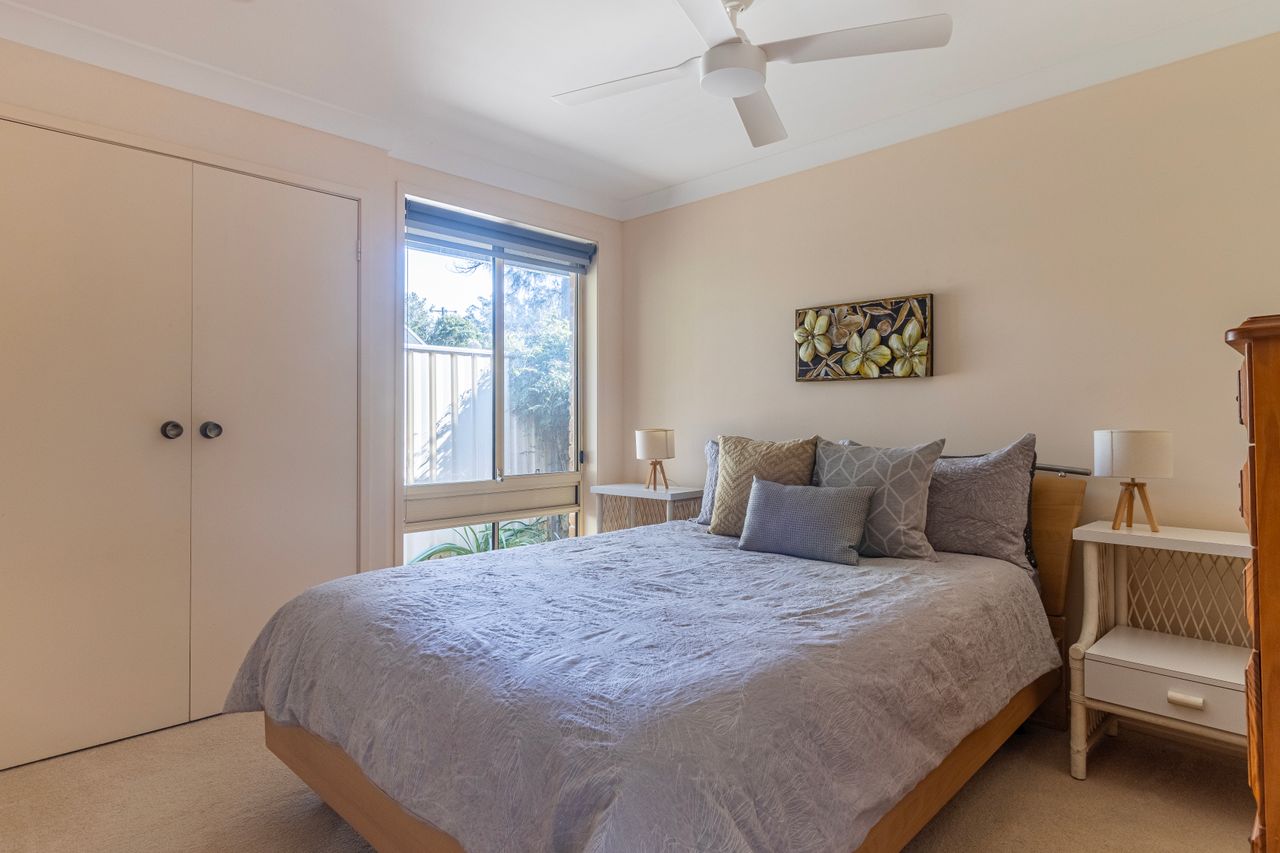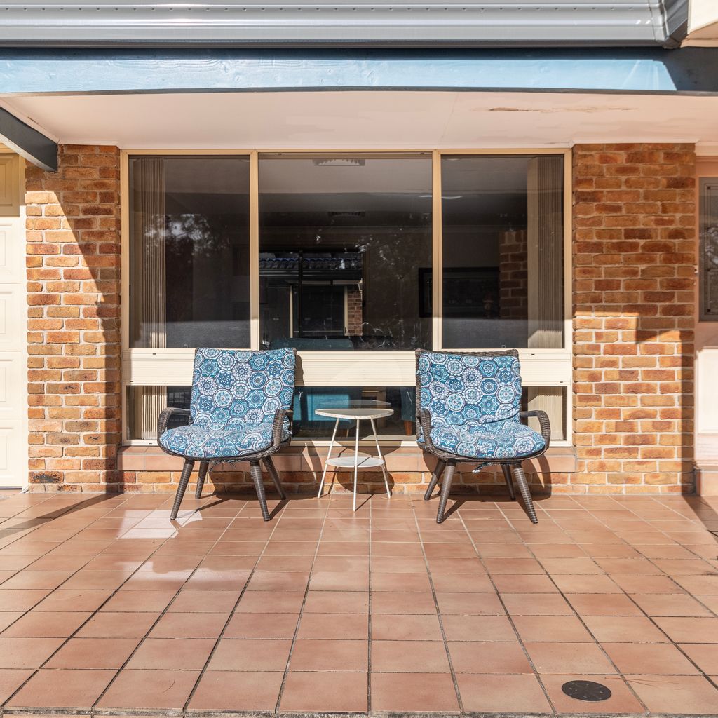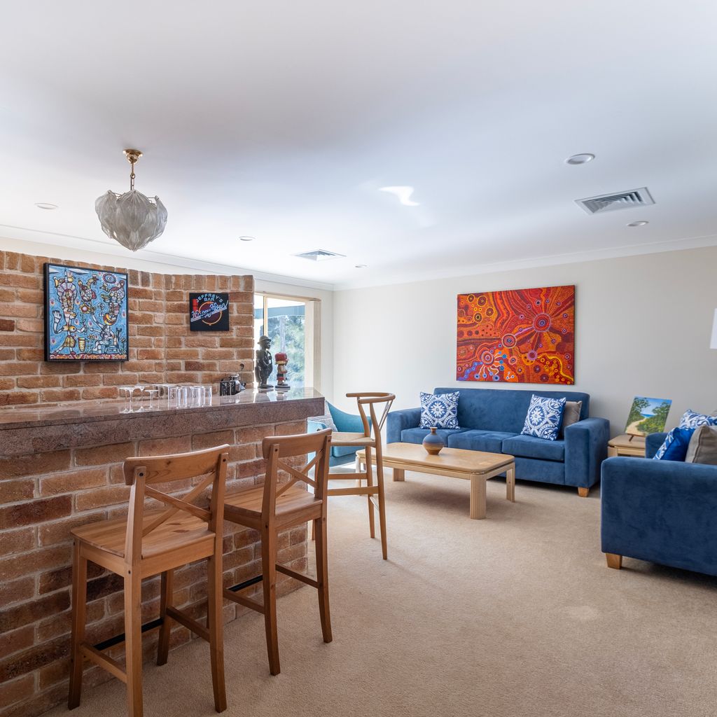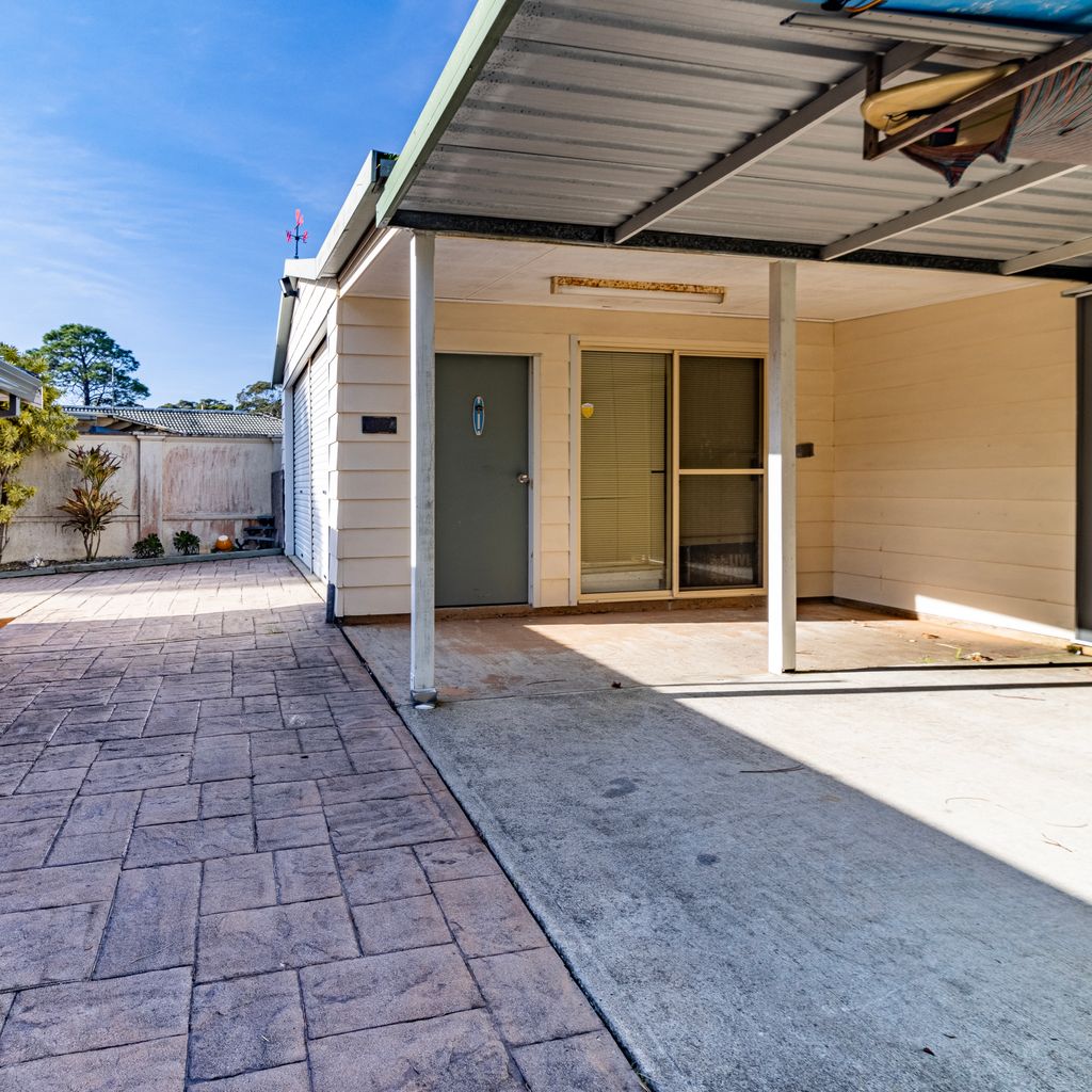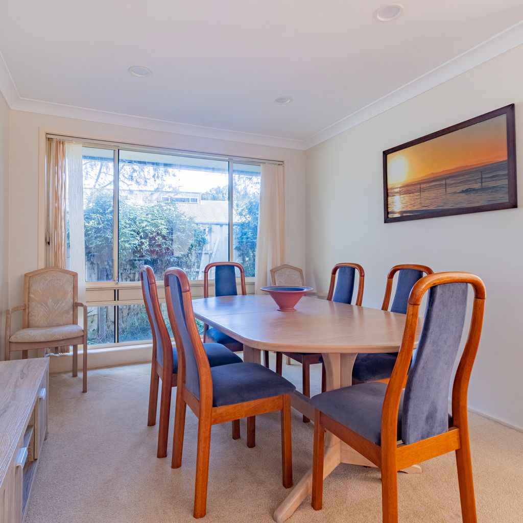As you arrive at Berrara Breeze, you'll enter through the side gate, where you're greeted by a welcoming patio furnished with an outdoor lounge and dining table—an ideal spot to unwind after a day at the beach or out on the water. A large ceiling fan ensures comfort during warm summer days.