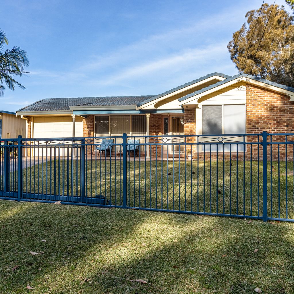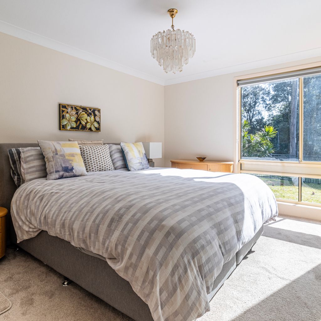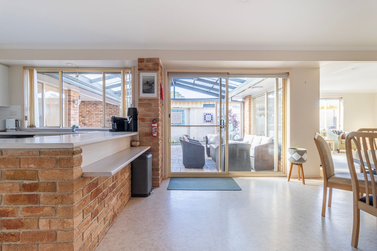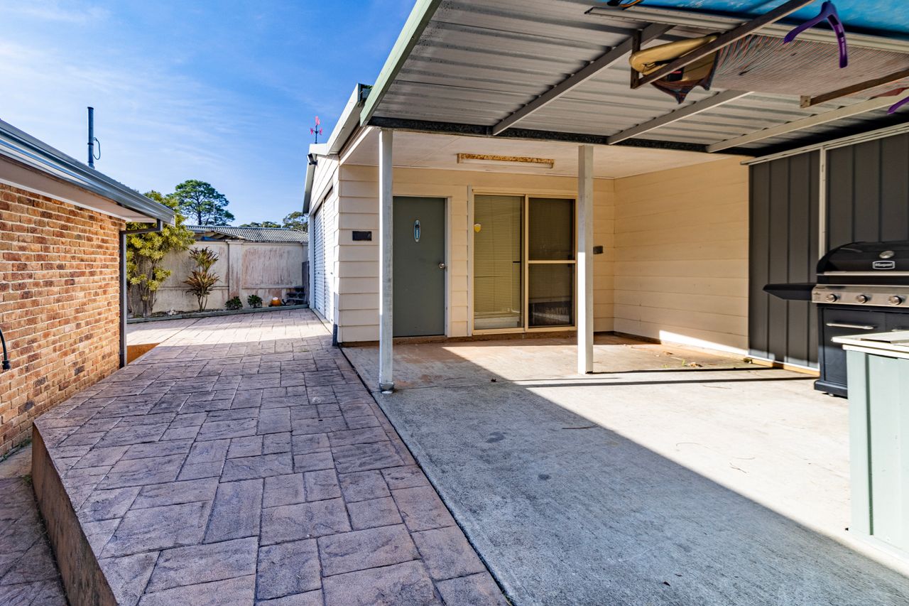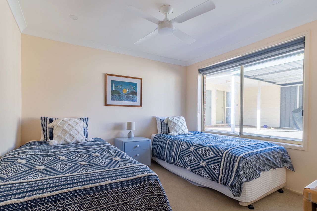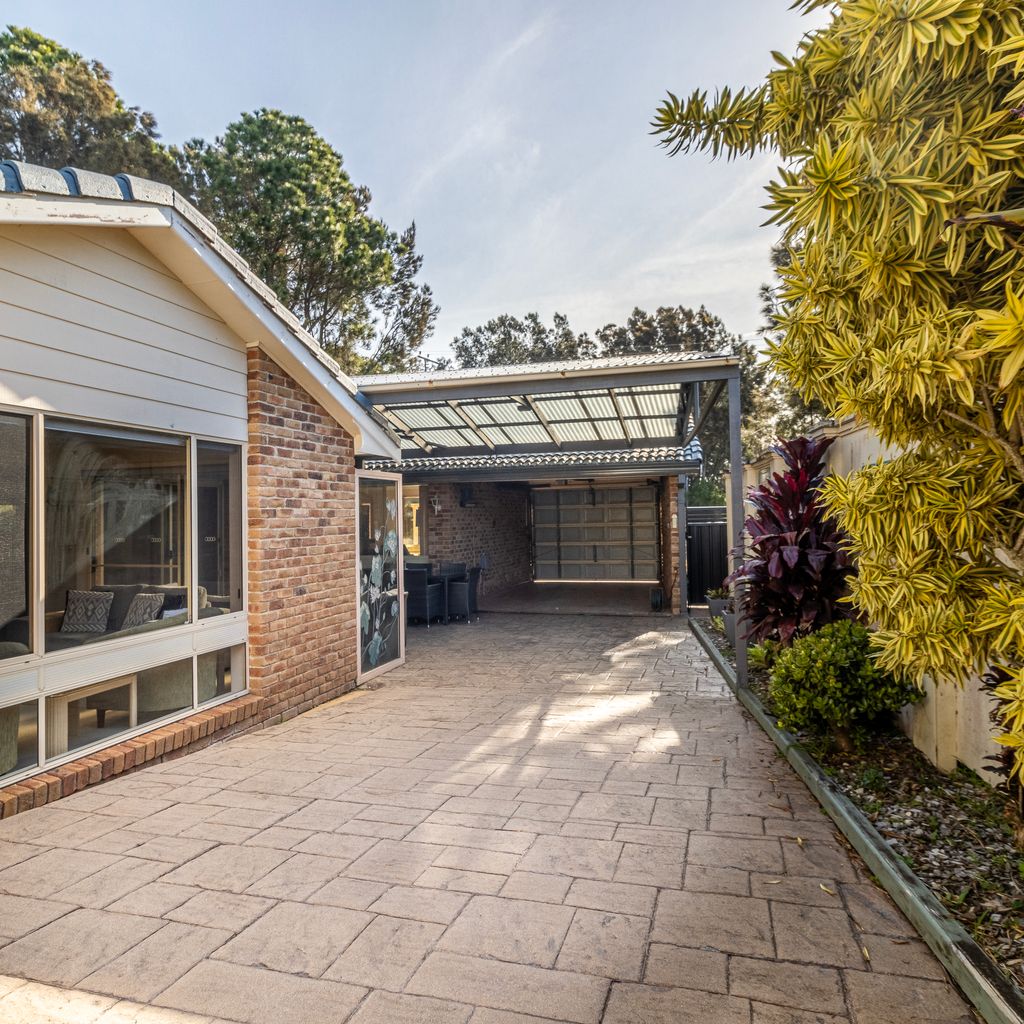 As you arrive at Berrara Breeze, you'll enter through the side gate, where you're greeted by a welcoming patio furnished with an outdoor lounge and dining table—an ideal spot to unwind after a day at the beach or out on the water. A large ceiling fan ensures comfort during warm summer days.
