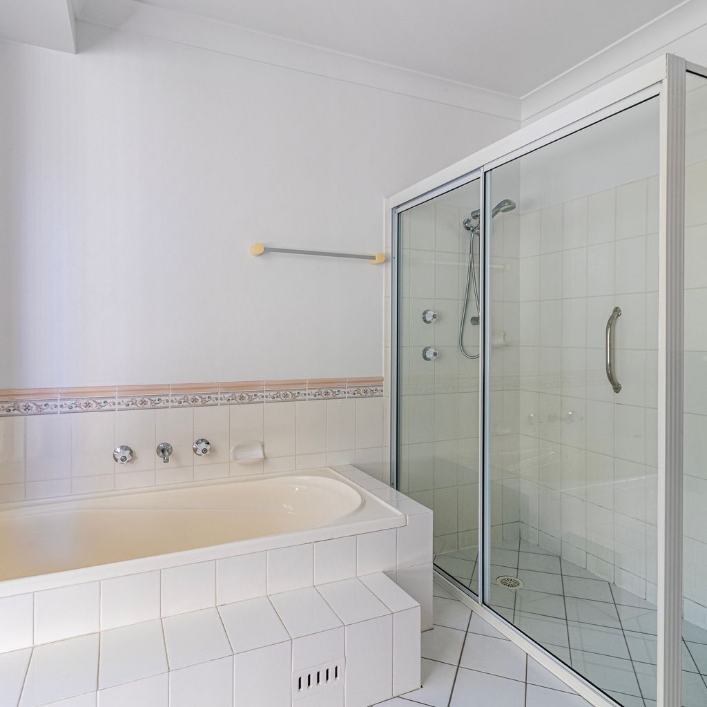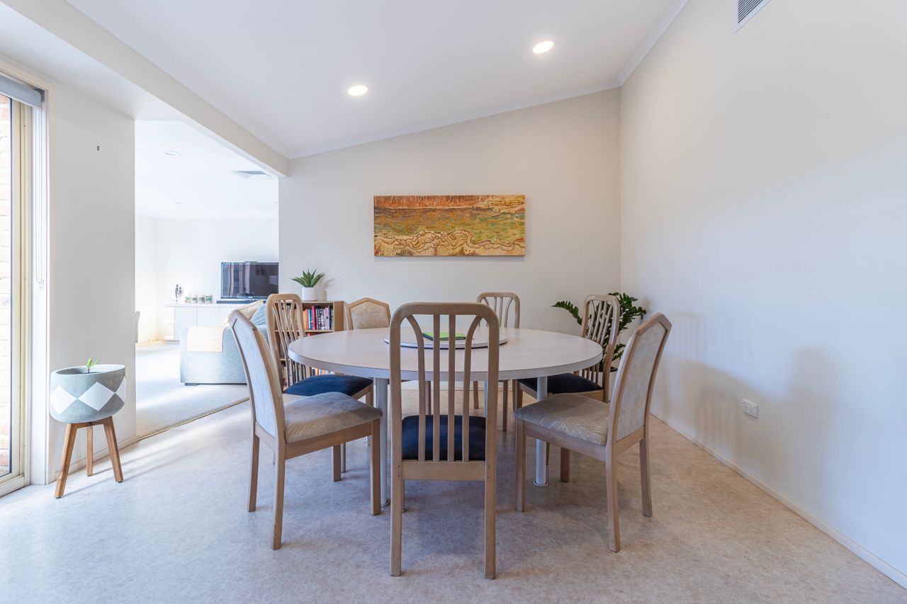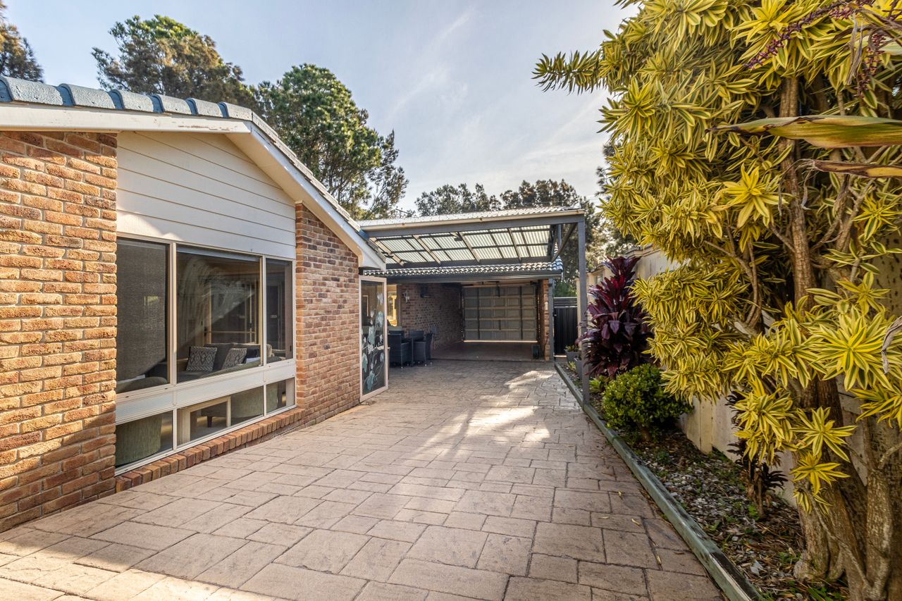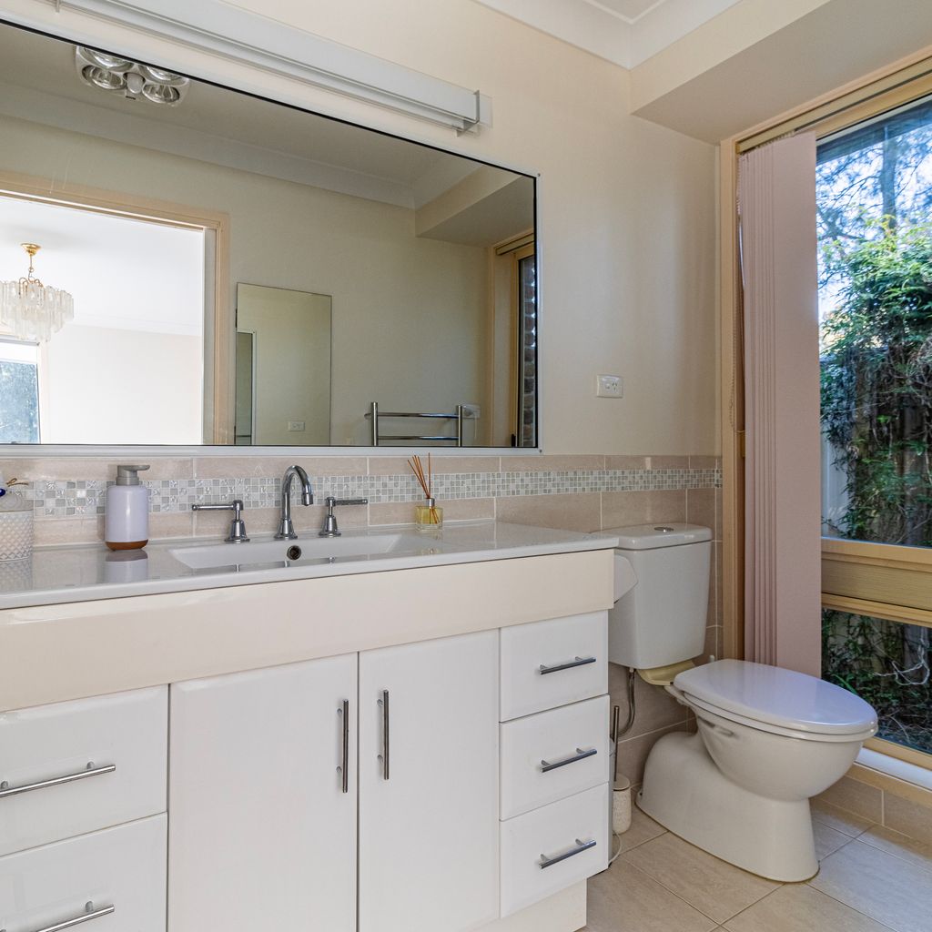 A hallway leads from the dining area to three of the four bedrooms, the main bathroom, and the laundry. Each bedroom is equipped with ducted air conditioning to maintain the perfect temperature year-round, as well as ceiling fans and built-in wardrobes for your convenience. The main bathroom is spacious, featuring a large vanity, a full bathtub, and a shower, while the laundry is equipped with both a washer and dryer.