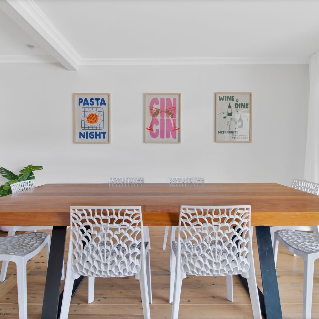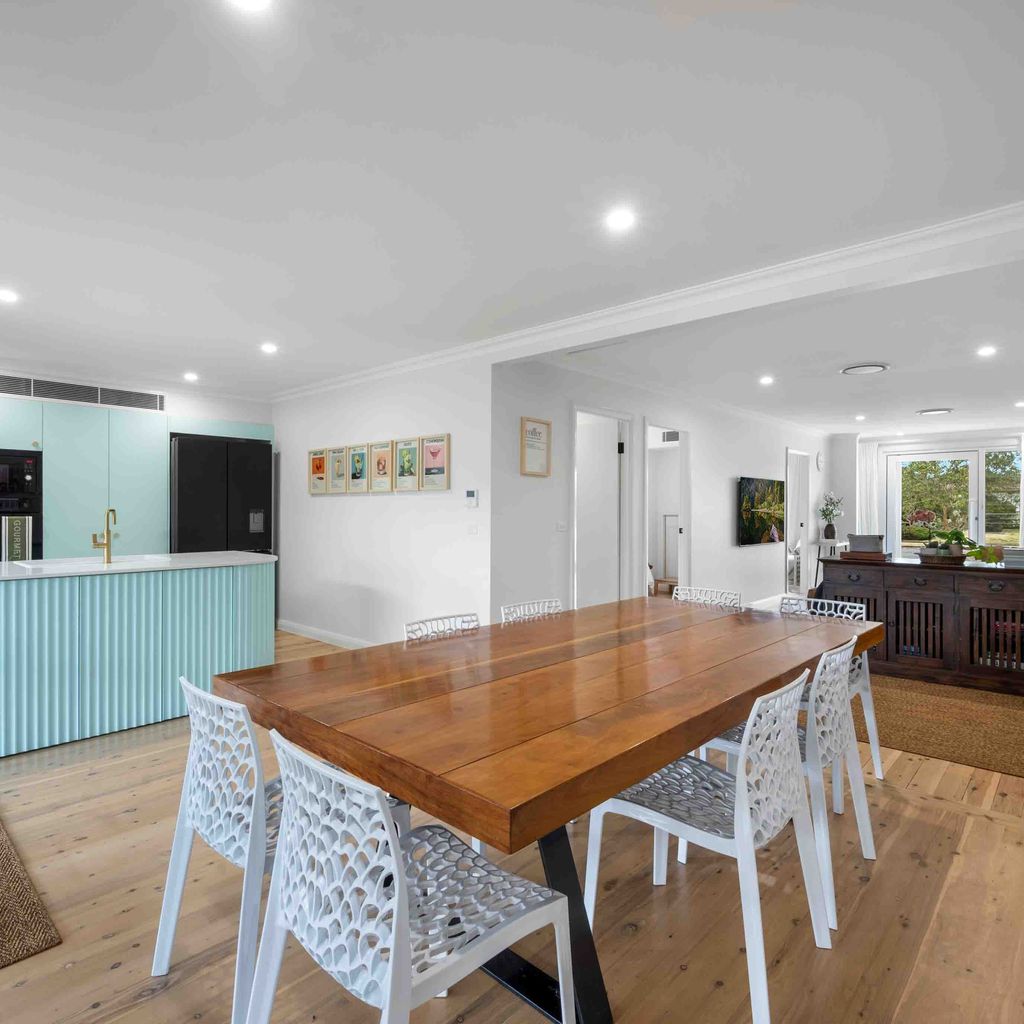 The kitchen has been equipped with double ovens, a dishwasher, a coffee machine, and a large fridge and freezer, while a generous wooden dining table invites you to enjoy relaxed family dinners or fun game nights.