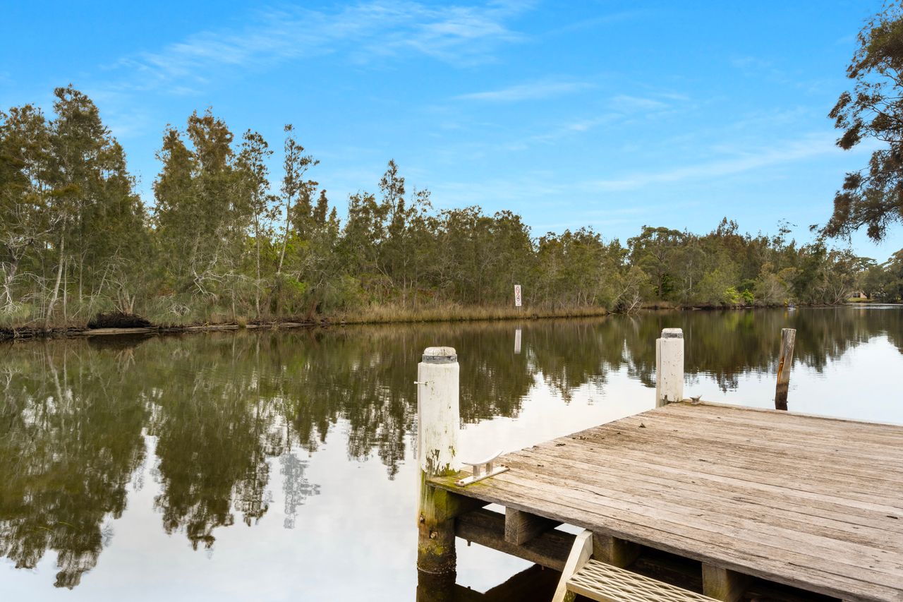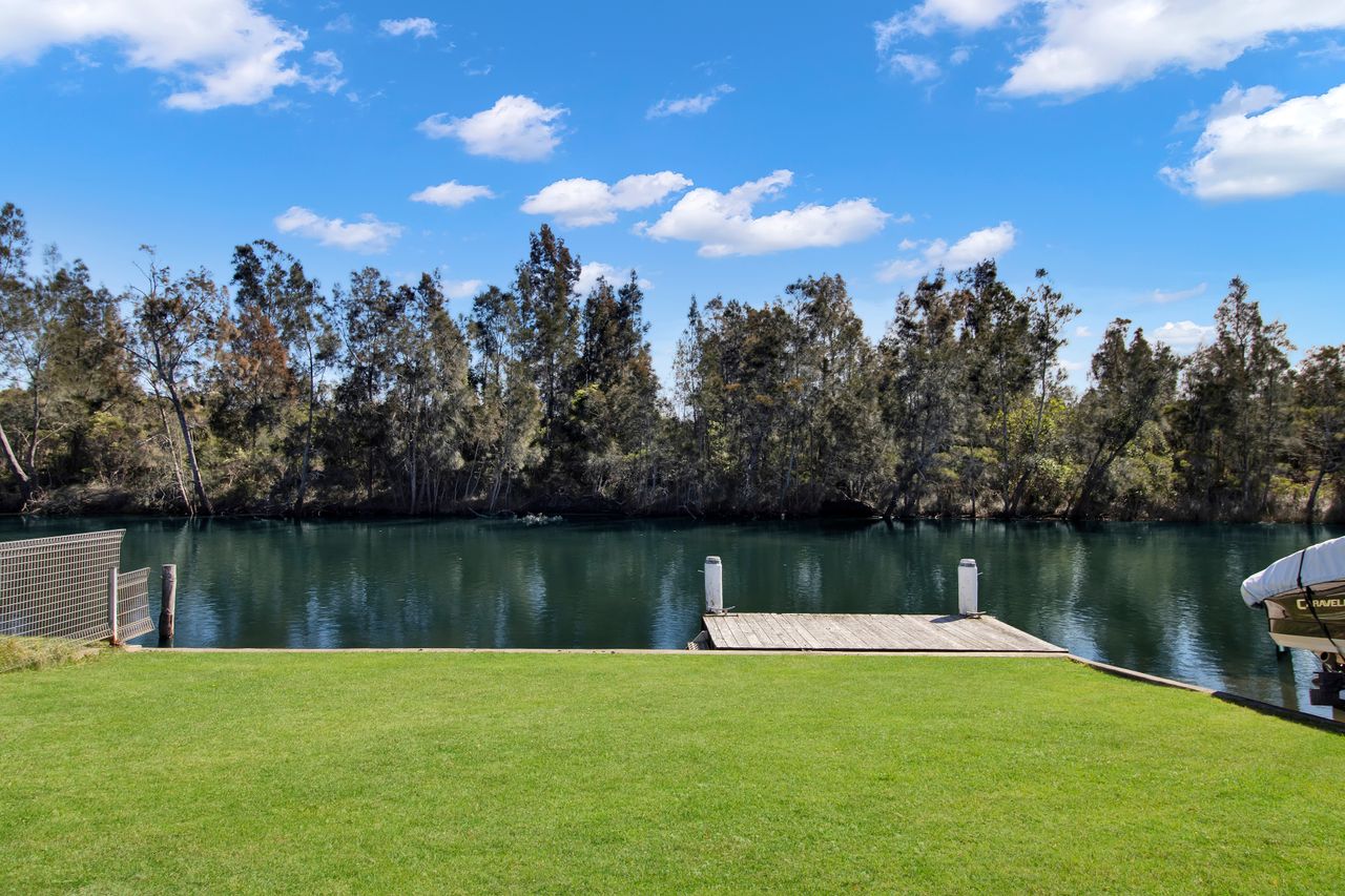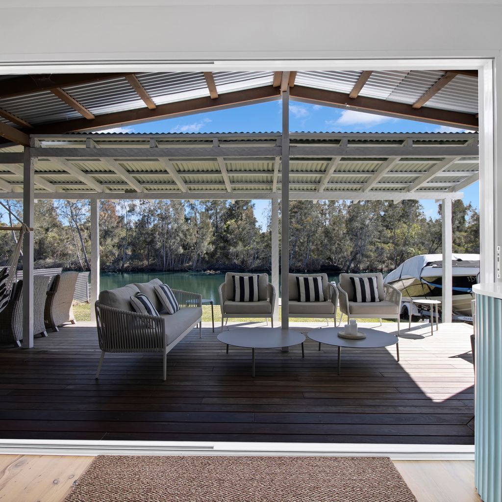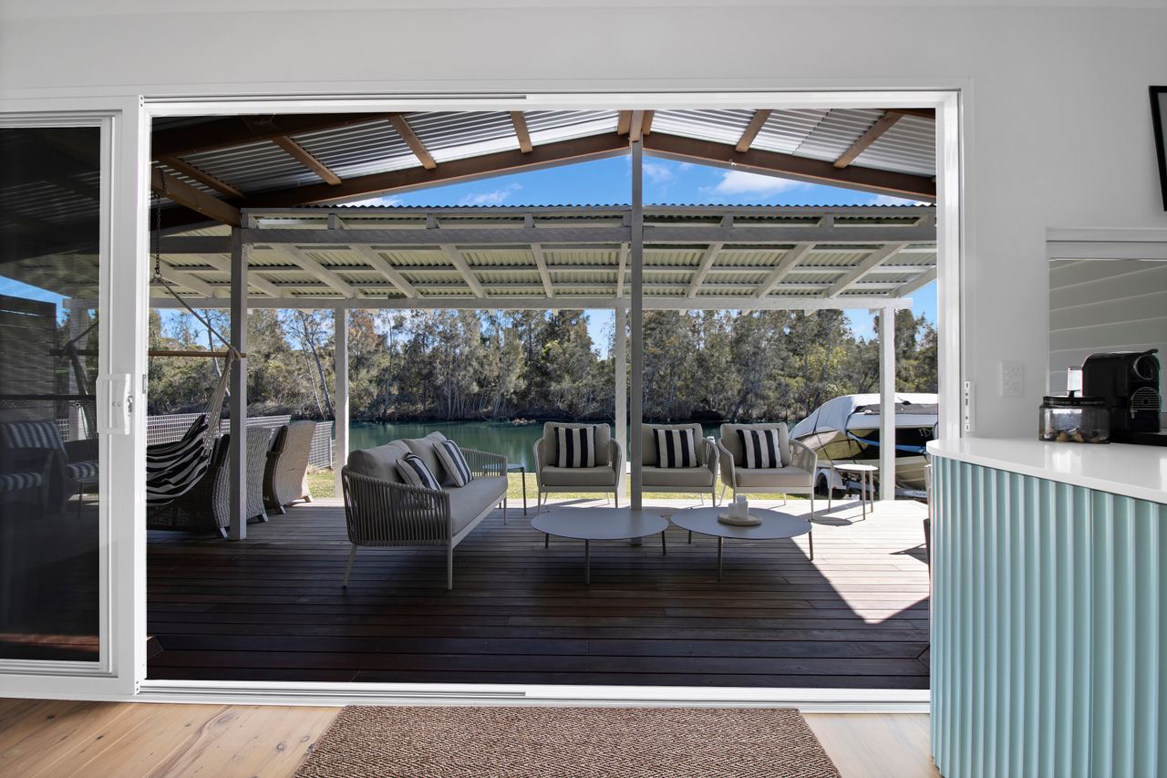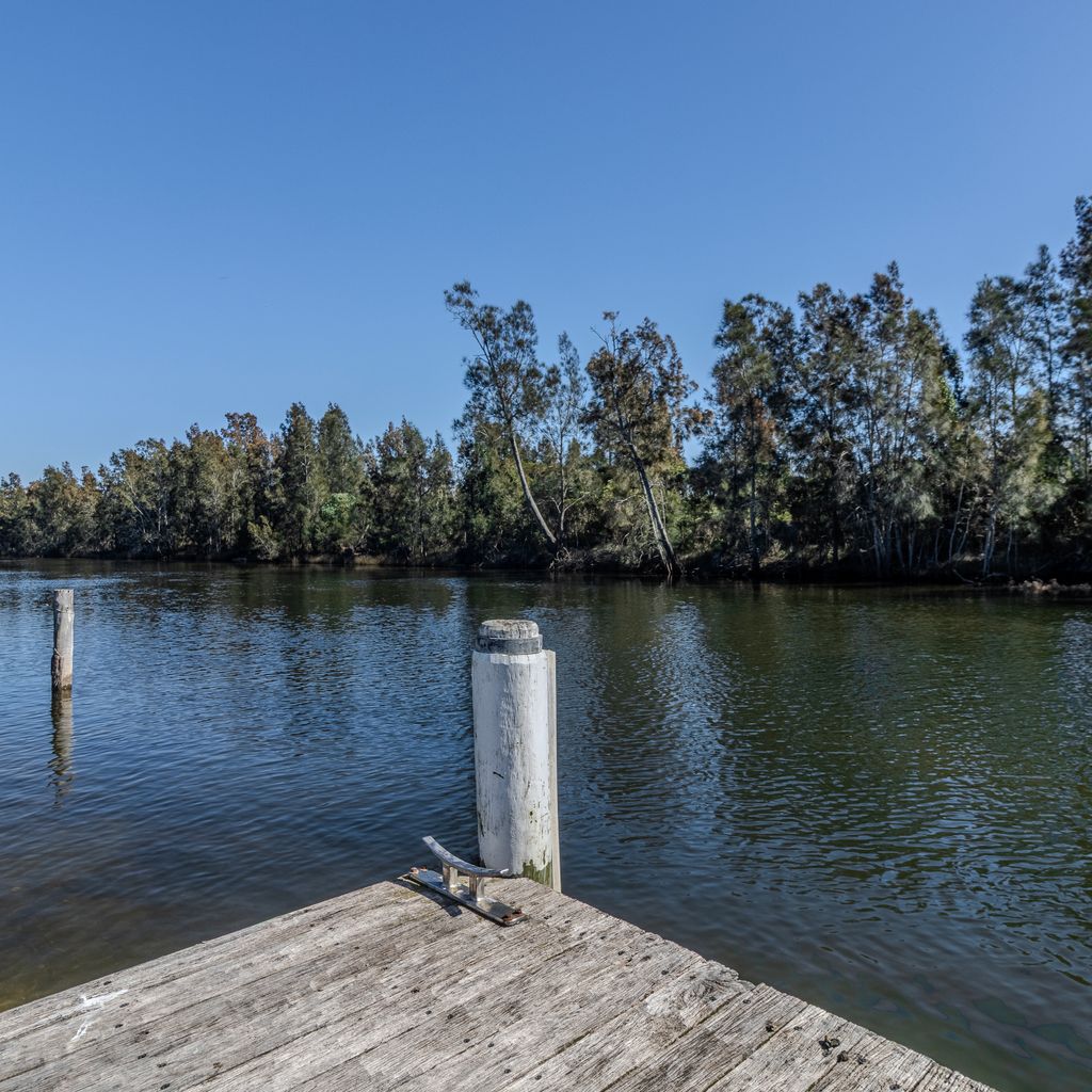 The back deck has been styled with a variety of seating options to suit everyone, whether you’re looking to lounge in the sun or gather around for afternoon festivities. A well-positioned BBQ makes it easy to cook up an afternoon gathering after a day exploring the waterways, while the grassed yard offers plenty of space for children to run and play. The private jetty provides direct access to the water, making it perfect for mooring your boat, swimming, fishing, or simply soaking up the tranquil views. A convenient ladder ensures safe and easy access back onto the jetty after a refreshing dip.