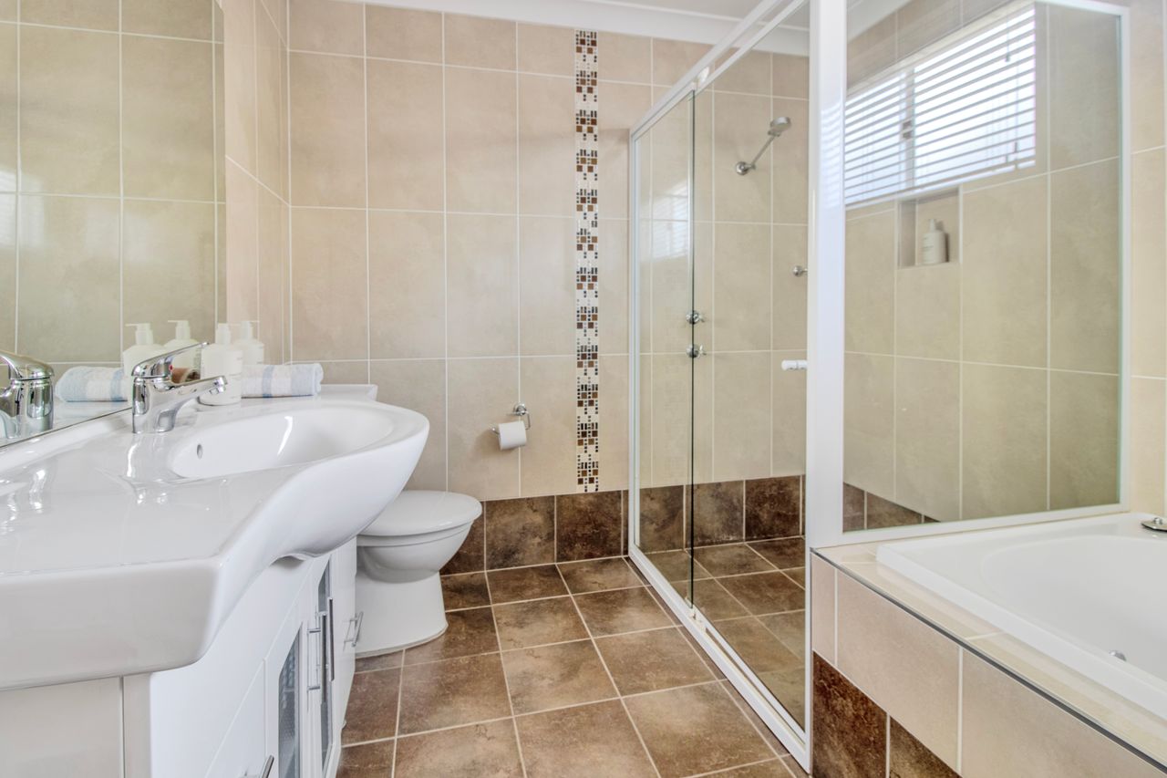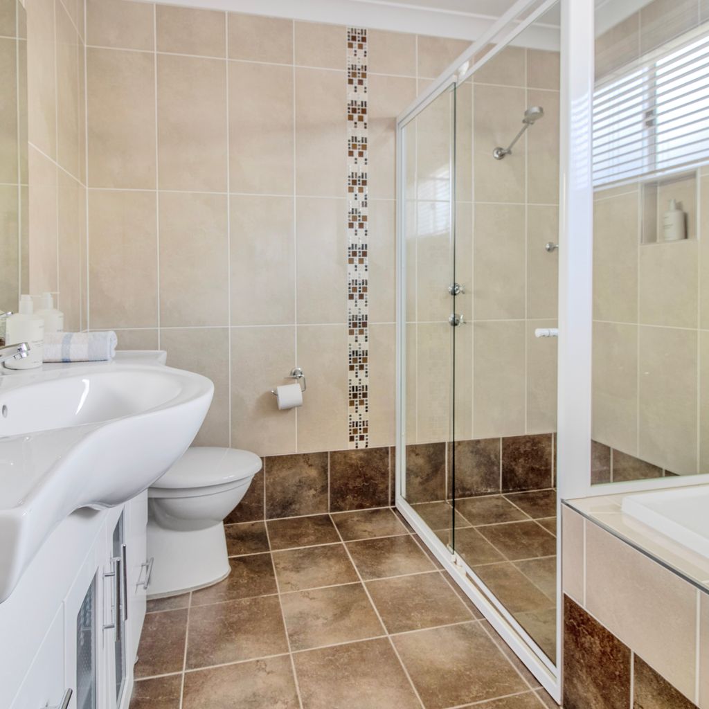 Venturing further into the chalet, you'll discover two comfortably appointed bedrooms, ensuring a restful night's sleep after a day of coastal exploration. The conveniently located bathroom, nestled between the bedrooms, features both a shower and bathtub, providing the perfect place to refresh and rejuvenate.