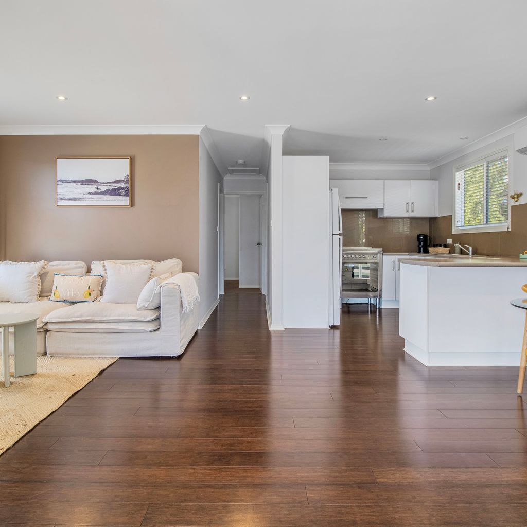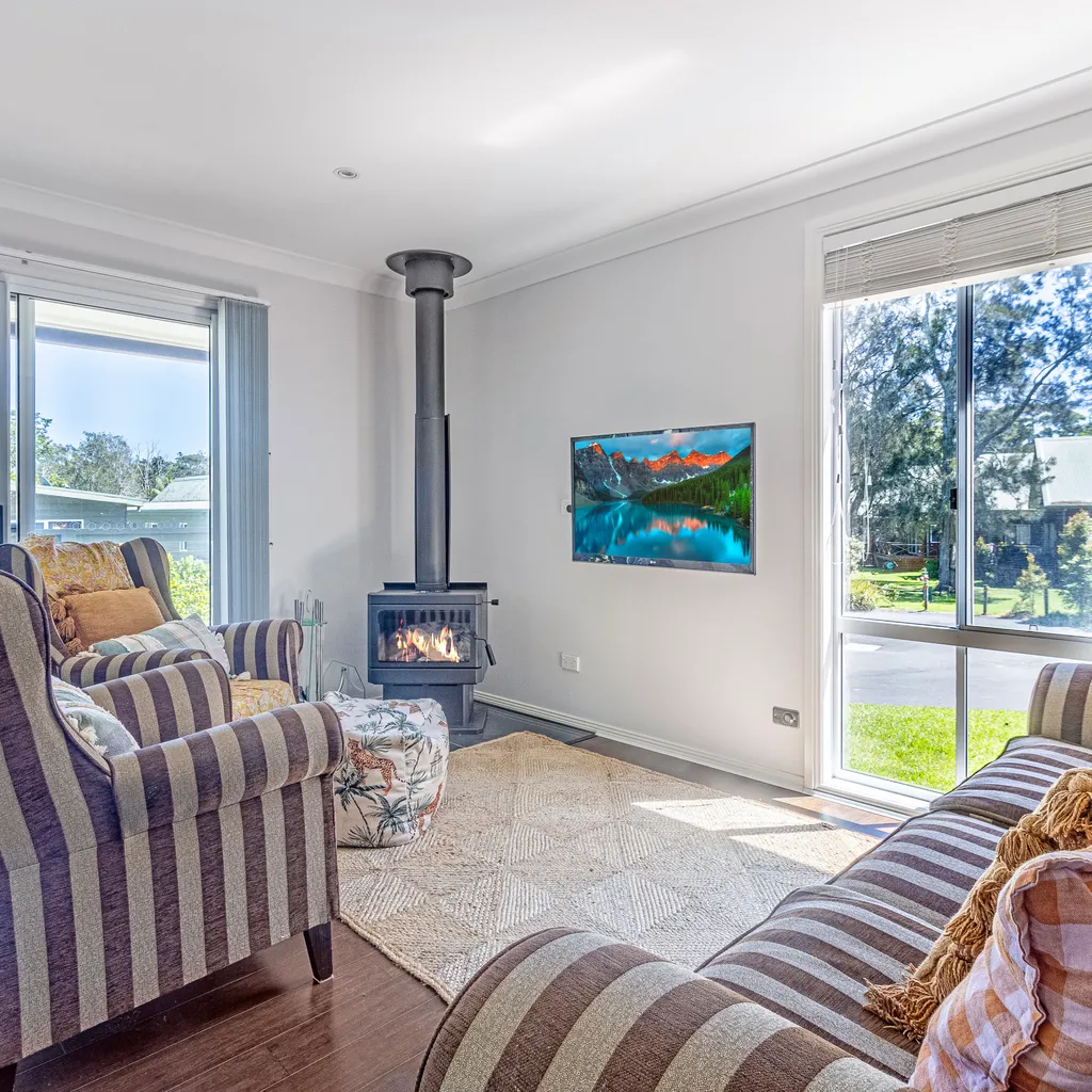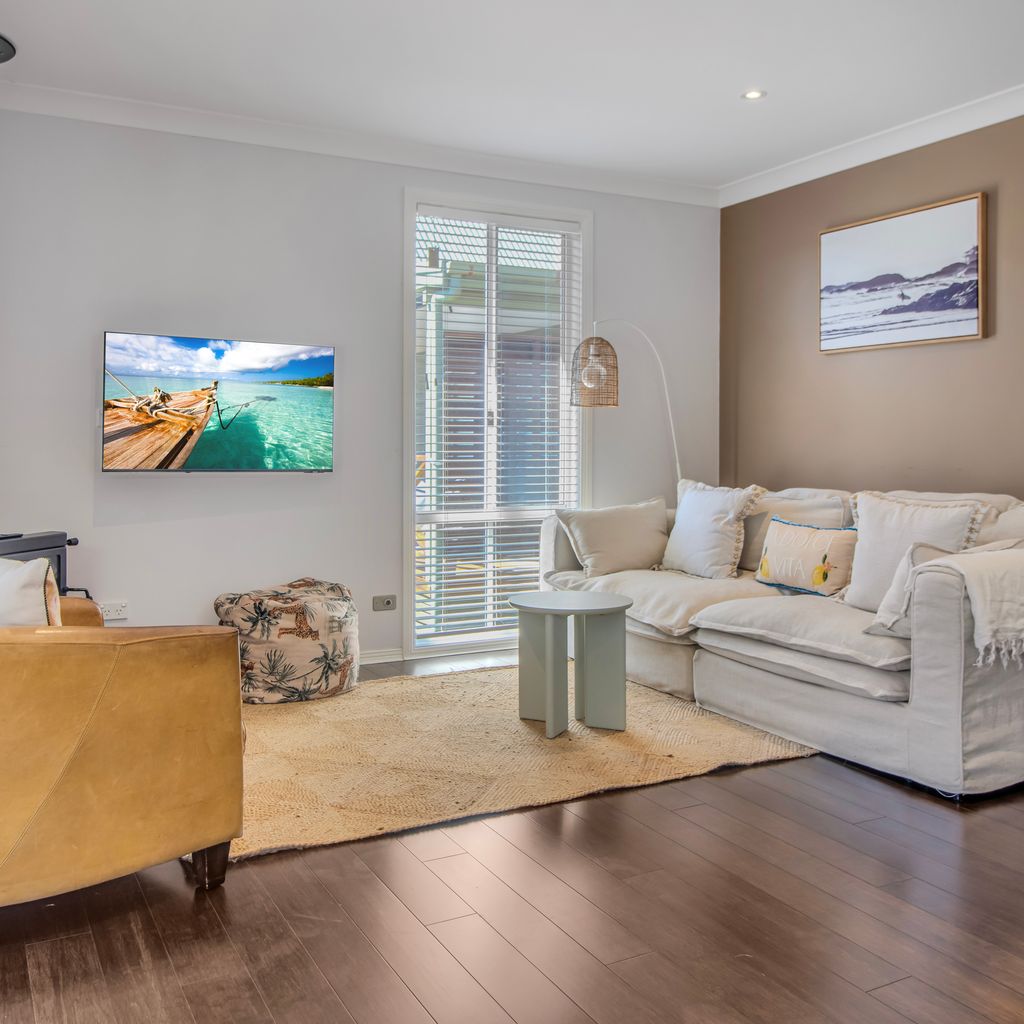 Stepping inside, you'll be greeted by an open-plan living area adorned with coastal-inspired touches. The lounge, dining room, and kitchen seamlessly flow together, creating a spacious and inviting atmosphere. Curl up beside the fireplace in the living area for cosy evenings spent in good company or simply unwind with your favourite book.
