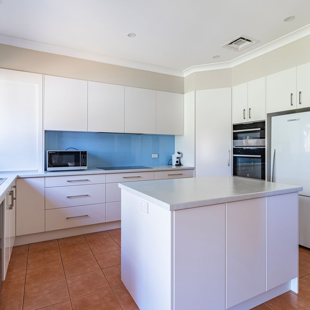 The heart of the home is the open-plan living area, where you’ll find a modern kitchen, dining area, and lounge room, all designed to take advantage of the stunning river views. The kitchen is well-equipped with modern appliances, a large island bench, and plenty of space for preparing meals.