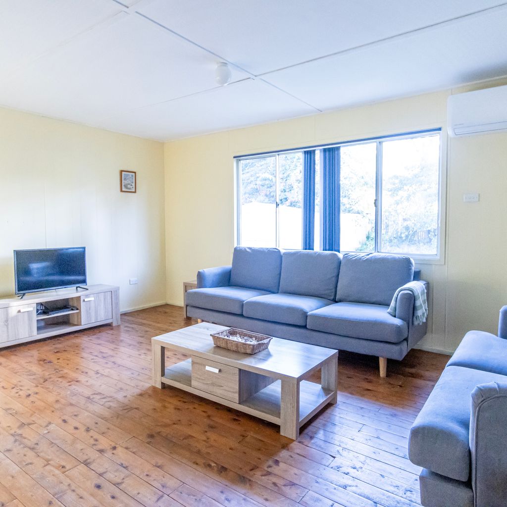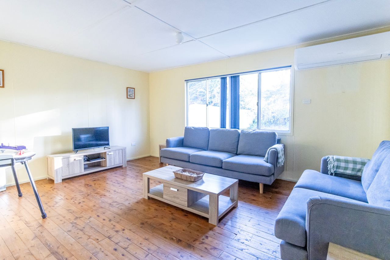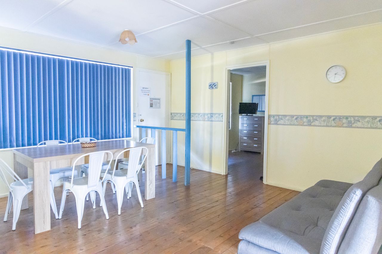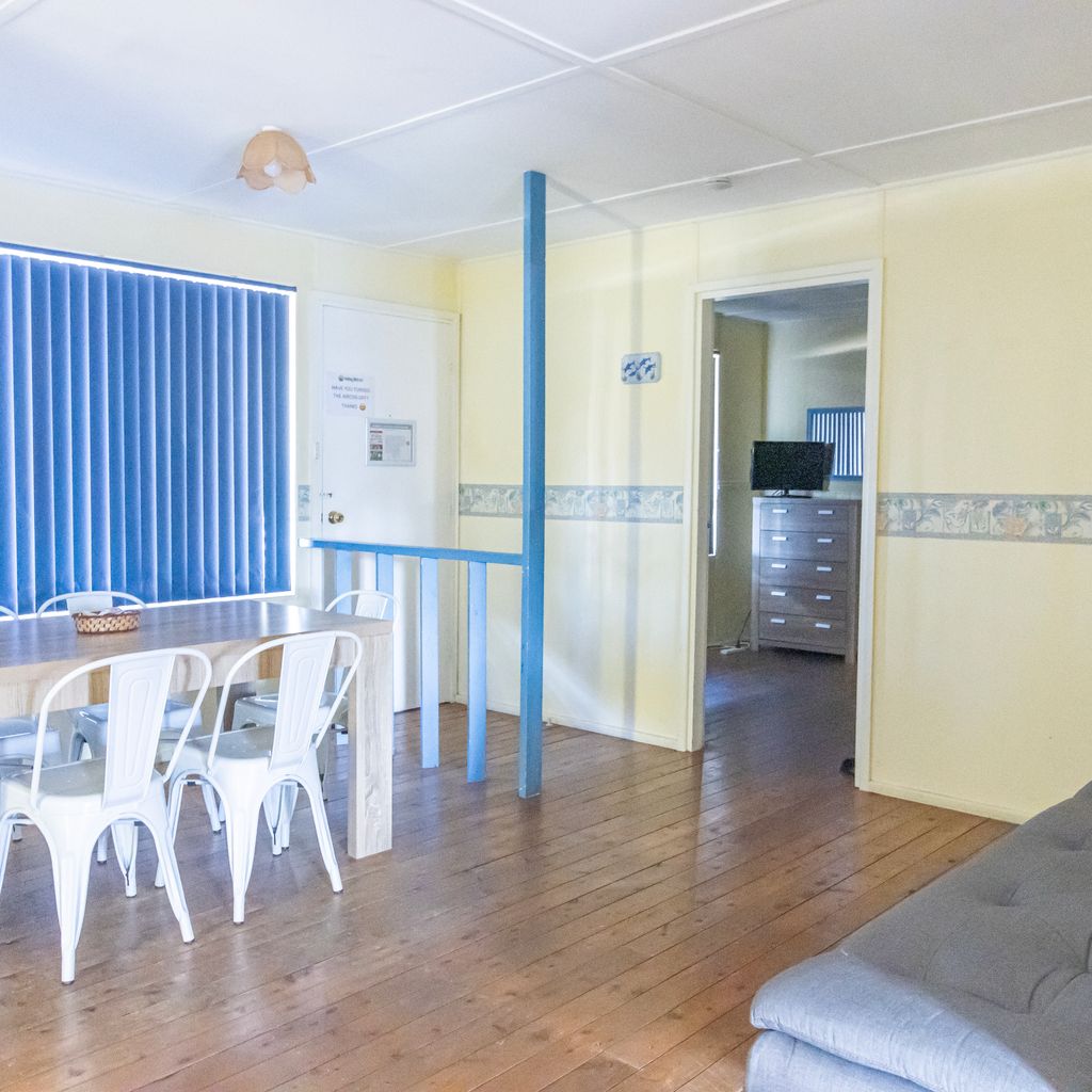 Heading past the dining table, you'll find the third bedroom on the left, providing a peaceful and private space to unwind after a day of exploration. Continuing forward, you'll enter the lounge room, where you can relax in comfort. Enjoy the cool air conditioning during warmer days while watching TV or engaging in some friendly competition with the assortment of board games provided.