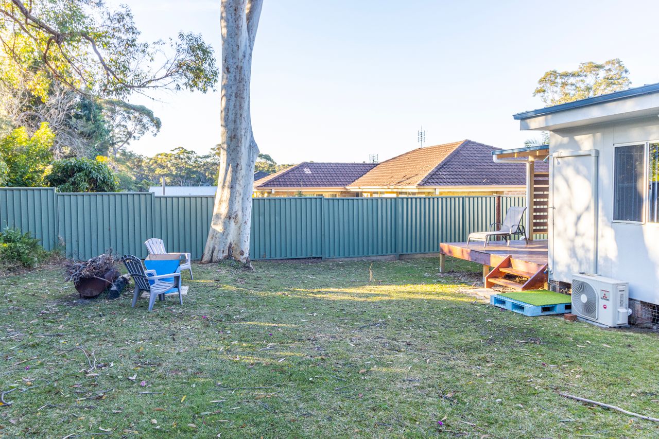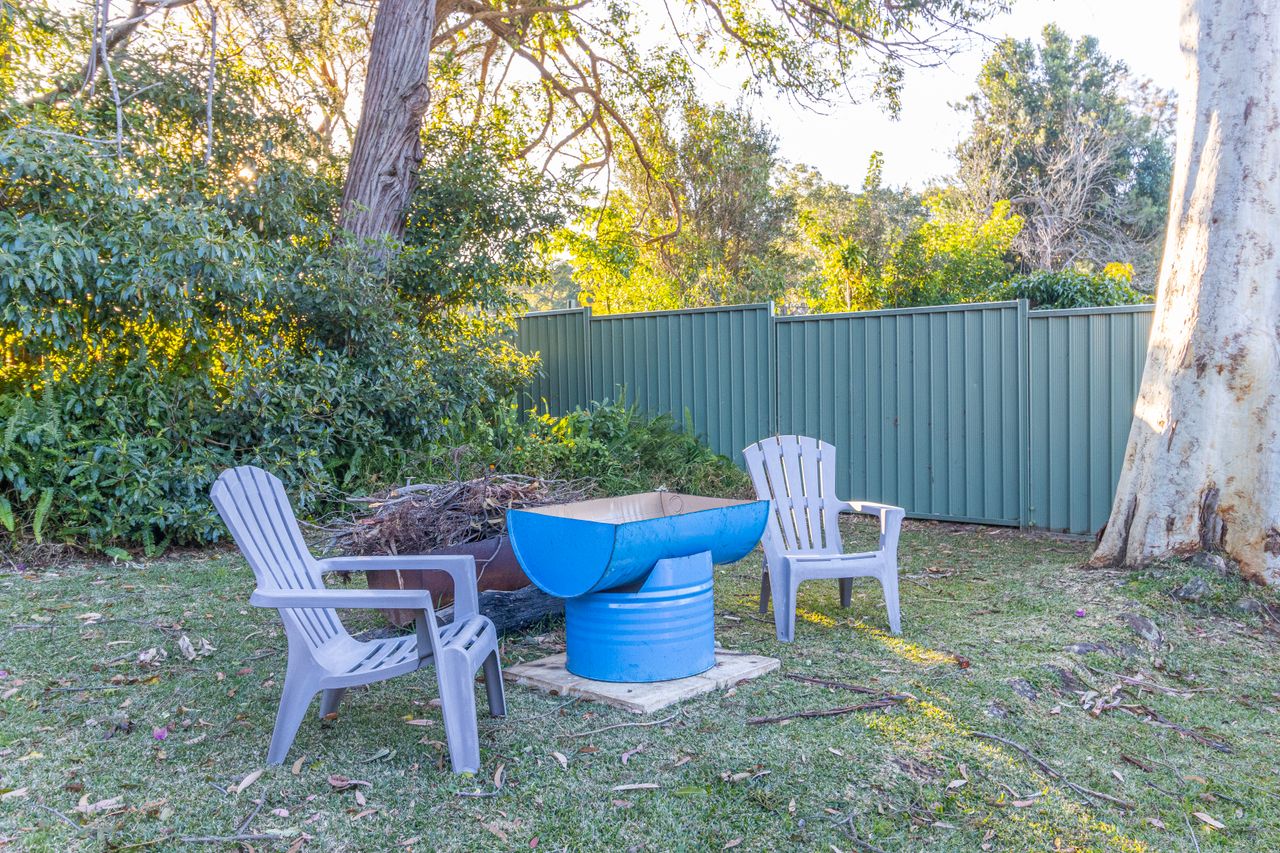 The backyard of The South Sussex Cottage is truly an outdoor haven. Surrounded by bushland, it offers a tranquil ambiance and a sense of seclusion. Here, you'll find a cozy fire pit, providing a wonderful spot to gather around, share stories, and toast marshmallows under the starlit sky. An outdoor shower offers a refreshing way to rinse off after sandy beach days.